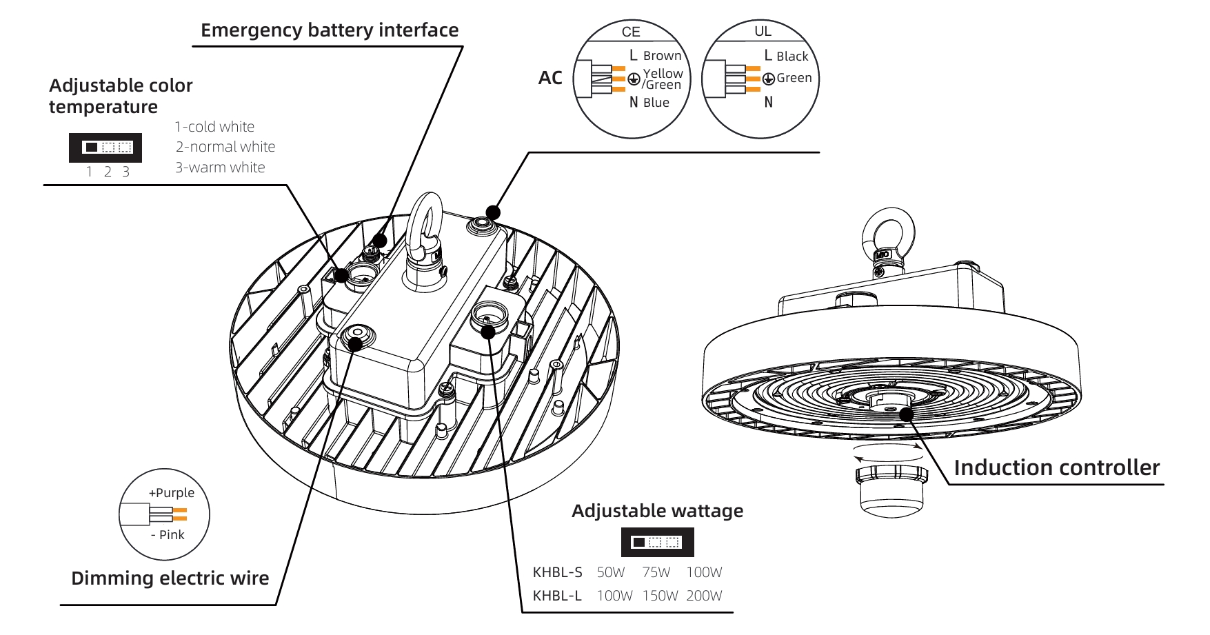 Features as adjustable beam angle, wireless control adjustable wattage. It can be widely used in manufacturing, warehouse, logistics center, exhibition hall and other scenes.